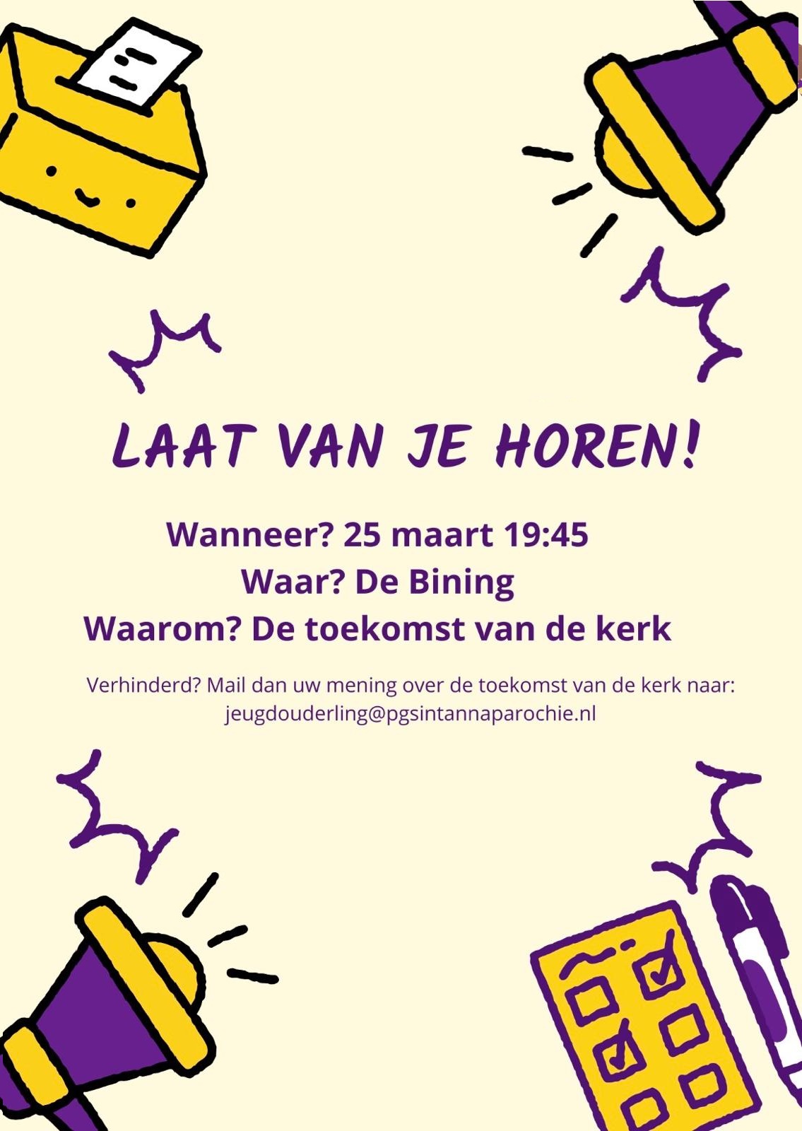 meer info en opgave strookje zie kerkemet. Juni